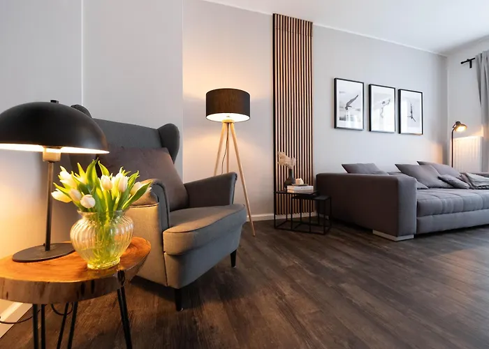 Este apartamento de 60 m^2 está situado en el distrito Pempelfort, a 10 minutos en coche del aeropuerto Internacional de Düsseldorf. El apartamento está a unos cuantos pasos del Oberkassel y ofrece acceso al Heilig-Geist-Kirche. Kunst im Tunnel está a unos 2 km de Tanic Deluxe Apartment Garden Central Industrial Fair.